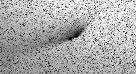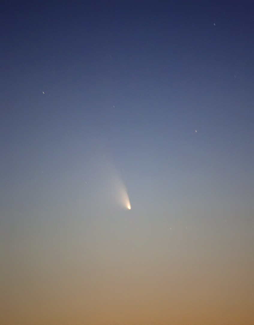 Compositage avec Photoshop de quatre poses JPEG de 5 sec ISO 3200 @ 250mm. Voici un zoom détaillé sur la comète.